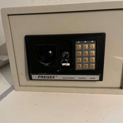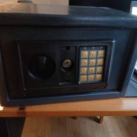 Pengeskab der har været i butik . Man skal selv bære det ud.