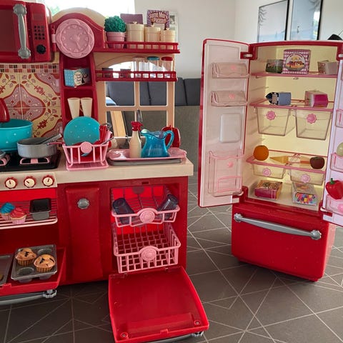 Our Generation Legekøkken i rød med flere tilbehørselementer såsom køleskab, ovn, mikroovn og vask. Sættet indeholder små tilbehørsdele til leg, der efterligner et fuldt udstyret køkken. Designet til børn til rolleleg og udvikling af sociale færdigheder.