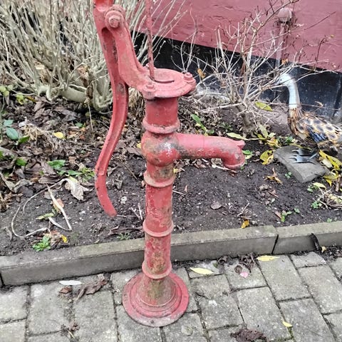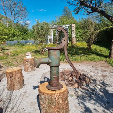 Denne håndvandpumpe hjælper dig ikke kun med hurtigt at trække vand fra jorden op til 8 meter dybt, men fungerer også som et ornament i din have. Denne vandpumpe er håndbetjent og meget nem at betjene. Når håndtaget bevæger sig op og ned, pumpes vand fra jorden og strømmer ud fra vandhanen. Denne håndpumpe kan nemt installeres og monteres. Den har en vægt på 10,5 kg og er holdbar til mange års brug. Selve pumpen har et hunbeslag i bunden, og et PVC-rør eller et rustfrit stålrør skal tilsluttes beslaget for at lede vandet ind i pumpen. Bemærk, at der ikke medfølger rør. Pumpen kan også kombineres med vores stativ 41173. Bemærk: Vi anbefaler, at pumpen tømmes om vinteren, så den ikke fryser indvendigt. Materiale: StøbejernFarve: GrønProduktmål: 65 x 53 x 16 cm (L x B x H)Vægt: 10,5 kgMaks. løftehøjde: 6 mTilslutning: 38 mm (1 1/2") trådet hungevindbeslag (skal tilsluttes hangevindrør eller slangeforbindelse i bunden af pumpen)Diameter, bund: 16 cmBunden har 4 x 10 mm huller til montering af boltePakken indeholder kun pumpen