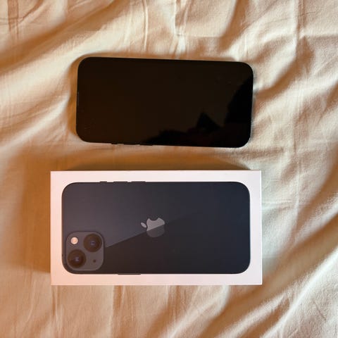 Meget velholdt Apple iPhone 13 med 128 GB lagerplads i sort farve.