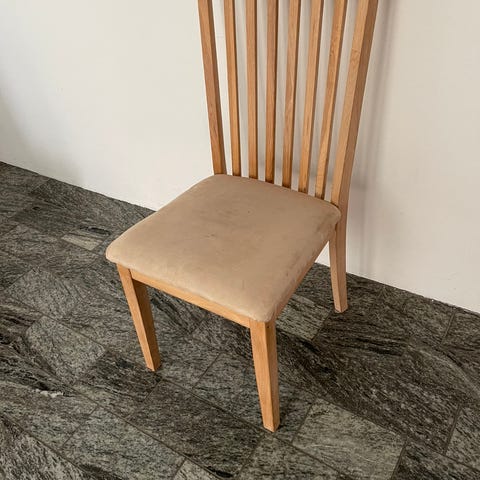 4 styks flotte og robuste spisebordsstole sælges, 3 af dem er ombetrukket så sædet er anderledes på den 4. stol. Ønsker man nyt betræk på dem alle er det enkelt at gøre.