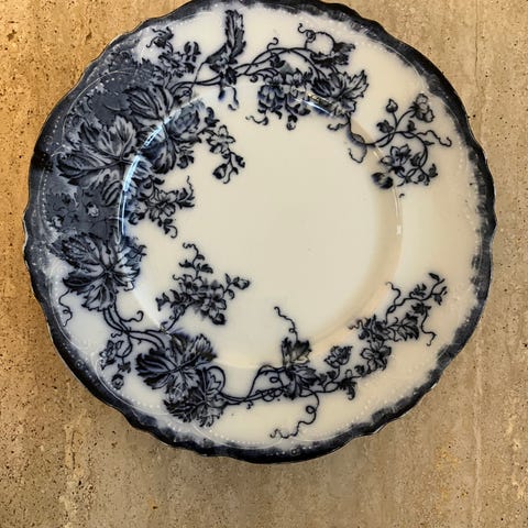 7 frokost tallerkner / platter med dyremotiver. 6 tallerkner med rund kant og 1 tallerken med 12 kanter