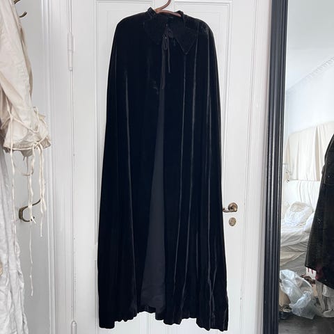 Vintage retro 1920erne flapper sort kappe/cape pyntet med søl pailletter samt smà perler i sølv. Den lukkes med en diskret hægte foran.