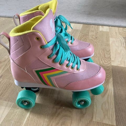 Rulleskøjter i størrelse 42 med sort farve. Velegnet til rulleskøjtning. Designet til at give støtte og komfort under brug.