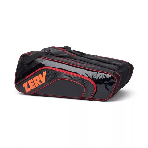Zerv badminton sportstaske i sort farve med røde detaljer. Tasken har flere rum med lynlåse og justerbar skulderrem. Velegnet til opbevaring af sportstøj og udstyr.