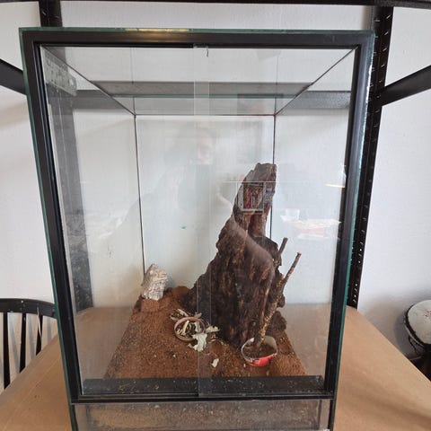 29x20x20. Revne på bagsiden men er stabilt og lukket. Har været brugt til vandrende pinde.
