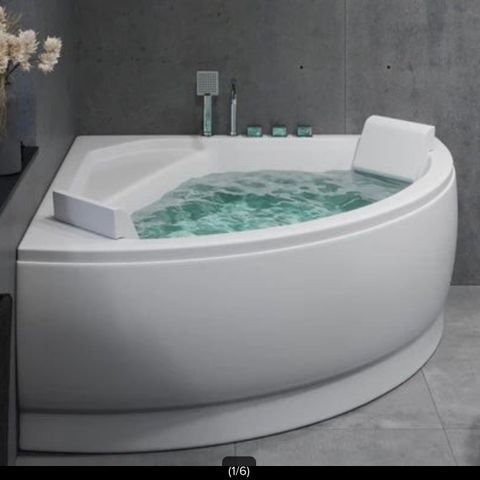 Badekarret er designet til at passe i et hjørne og har flere kontrolknapper til massagefunktioner.