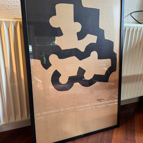 Galerie Maeght Kunstplakat med sort baggrund og hvide abstrakte former. Plakaten har et moderne og minimalistisk design, egnet til vægdekoration.