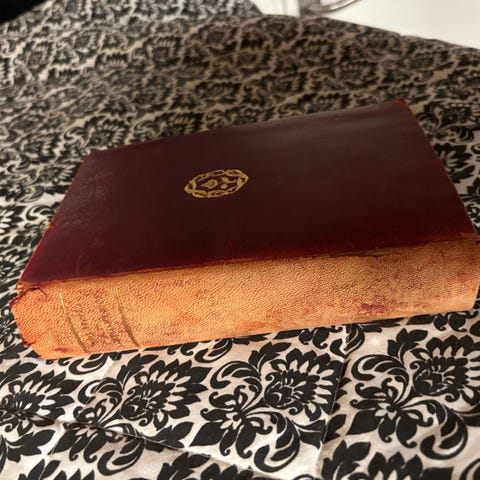 En charmerende gammel bog med patina og historie – perfekt til samleren eller som dekorativt element.