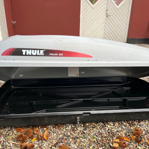 Thule Polar 700 tagboks i grå farve. Designet til montering på bilens tag for ekstra opbevaringsplads. Længde så der er plads til ski. Indeholder monteringsdele til fastgørelse.