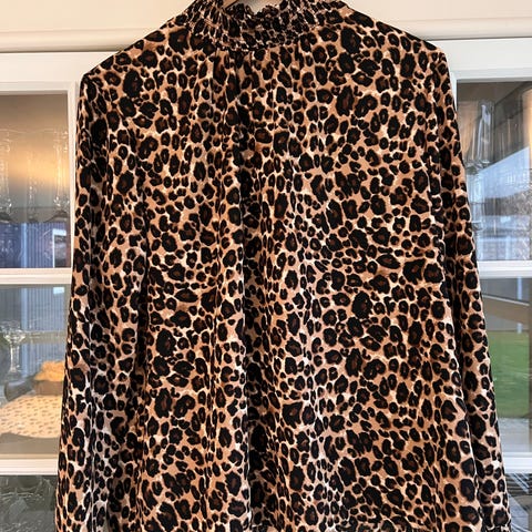Leopardmønstret bluse fra Pigalle med flot wrap-effekt / slå-om-look foran.