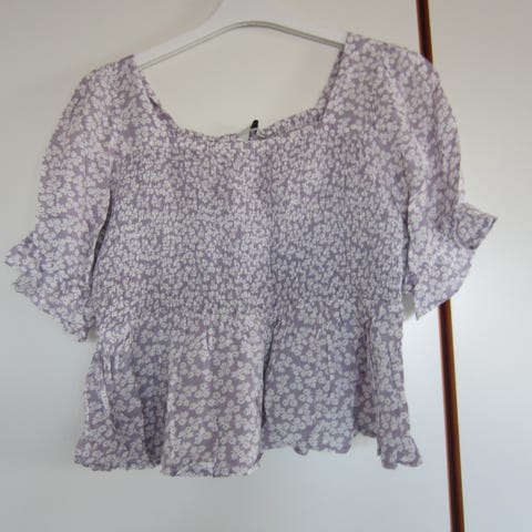 Blusen er ikke åben slå-om og har ingen snore – fronten er fastsyet med overlappende effekt.