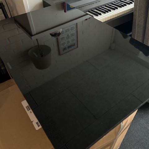 Derudover er der små skår i kanten som har været der siden vi overtog den (i juni 2025) men har virket helt fint med dette.