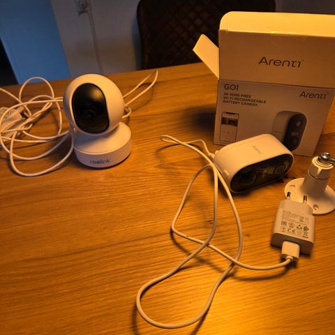 4 Stk Intelligent Camera, inde/ude, Inkl. vægbeslag og kabler, Evt. hjælp til montering.