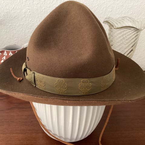 Spejderudstyr, Det Danske Spejderkorps, Lyst kernelæder str 80 cm med 2 stk karabinhager