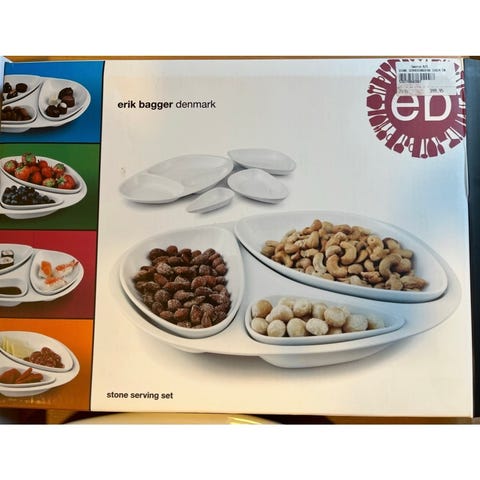 Porcelæn, Skål, Eric Bagger, Skåle fra Eric Bagger. De lyseblå, der måler 13 cm, koster 30 kr per styk. Dem har jeg 6 styk af. Den turkise, der måler 18x 18 cm koster 40 kr per styk. Jeg har et stort fad. Det koster 150 kr. Jeg sender ikke