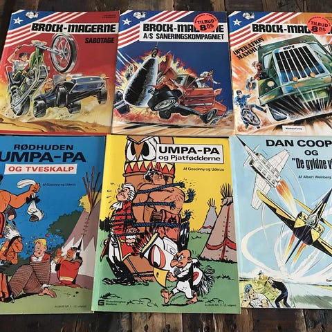 Samling af tegneserier med titler som Basserne, Momsemor, Sam & Silo, Vakse Viggo, Mads og Misse og Olfert.