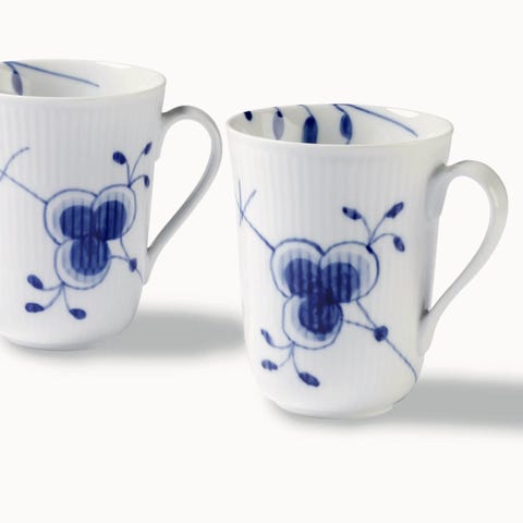 Royal Copenhagen Blå Mega Riflet Krus 2 stk. 36 cl - porcelæn - sort/hvid