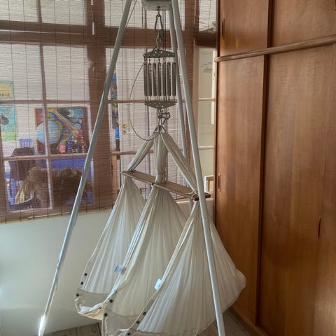 Er du træt af urolige børn, eller har du ikke tid til at bruge 1 time på at putte barnet hver gang, så har jeg den uundværlige slyngevugge til tvillinger fra nonomo. Har det hele så du bare ka sætte op med det samme. Sælger seperat og samlet.