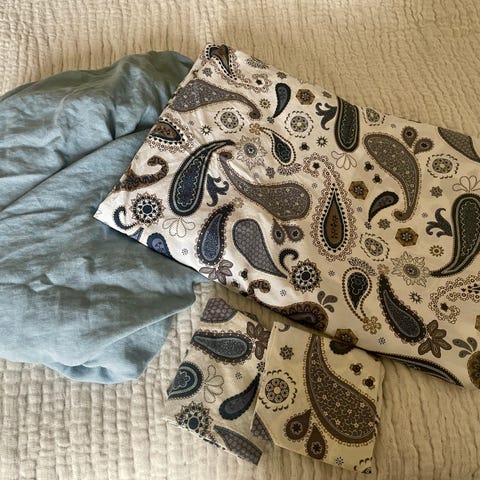 Ikea MJUKPLISTER sengetøjet 160x350 og to tilhørende puder 65x65. Petroleumsblå. God stand 1 ingen pletter eller huller eller andre brugspor.