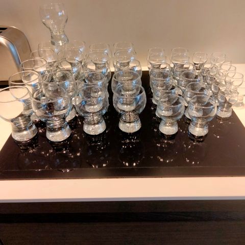 1 glas har et mindre skår og kan følge gratis med, hvis du ønsker det.