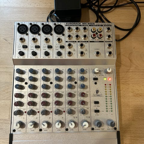 Behringer Eurorack UB1202 lydmikser med 12 kanaler. Udstyret med XLR-indgange og flere drejeknapper til justering af lydniveauer og effekter. Leveres med strømforsyning. Velegnet til lydmixing i studie- eller live-sammenhænge.