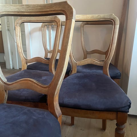 Super fine retro spisebordsstole med sødt motiv. Sælges da de desværre ikke passer til vores spisebord.