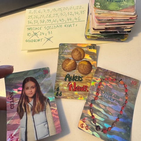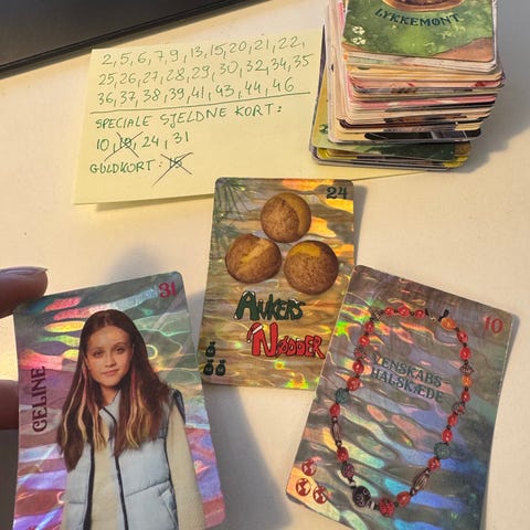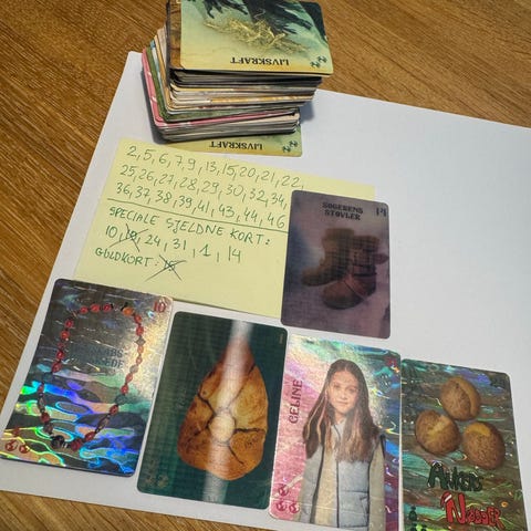 Sjældne kort: Celine no 31, Ankers nødder no 24 , venskabs-halskæde no 10, modertræets tårens 1, søgernes støvler no 14 og masser andre som på listen . Valdes jul. Samlekort .