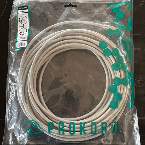 Kablet er nyt og posen har aldrig. Æret åbnet. Der er dog ikke prismærke på som overskiften siger.