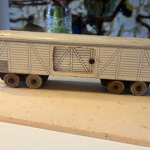 Modelbyggesæt med godsvogne på pladsen. Fra Faller (180384)