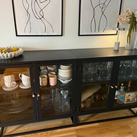 Lågerne/håndtagene er lidt skæve i den ene side, så skal lige skrues efter/rettes… Kun kosmetisk, lågerne åbner og lukker uden problemer. Mistænker et slaps hængsel. Deraf den billige pris. Nypris 2500kr.