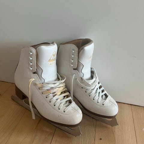 Roces Paradise hvide kunstskøjter i størrelse 38. Nypris 699 kr. Skøjterne er designet til kunstskøjteløb og har en klassisk hvid farve. De er udstyret med metalblade og snørelukning for sikker pasform.