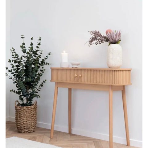 Smukt konsolbord fra Nordal, i den stilrene farve sort. Bordet har 2 skuffer med greb i mørkt jern. Et klassisk, flot og stilrent bord med en fin finish. Nypris 5.500,-