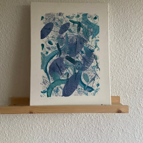 Dette er et håndlavet maleri lavet med spartel og akrylmaling i forskellige farver på et kvalitetslærred.
