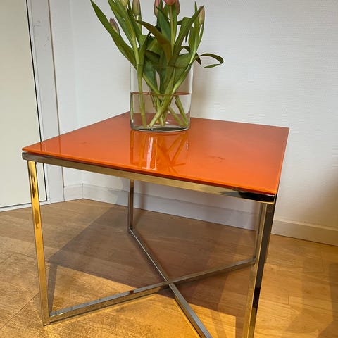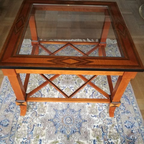Pæn og velholdt Hjørnebord med glasplade sælges