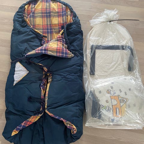Bemærk: slitage i det indvendige stof. Kan ikke ses, når barnet er i voksiposen. Stadig funktionel.