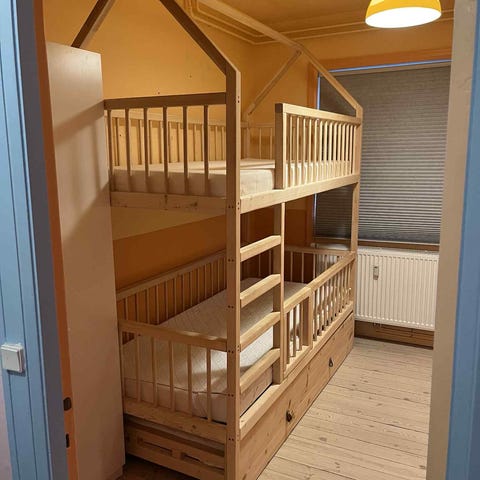 Rigtig fin ikea Småstad seng med skrivebord og skab. Tilpasset værelse med ny sengestolpe. Perfekt til det lilleværelse. Skal skilles ad og hentes inden 30/12-25