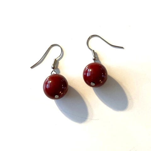 Ørestikker, andet materiale, Røde kugler. Fra 60'erne. (390)