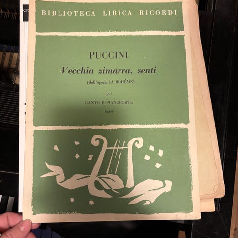 Italiensk nodehæfte med kendte operaarier arrangeret for sang (bariton) og klaver. Udgivet af det klassiske musikforlag Ricordi. Velegnet til sangere, musikstuderende eller som dekorativt element ved klaveret.
