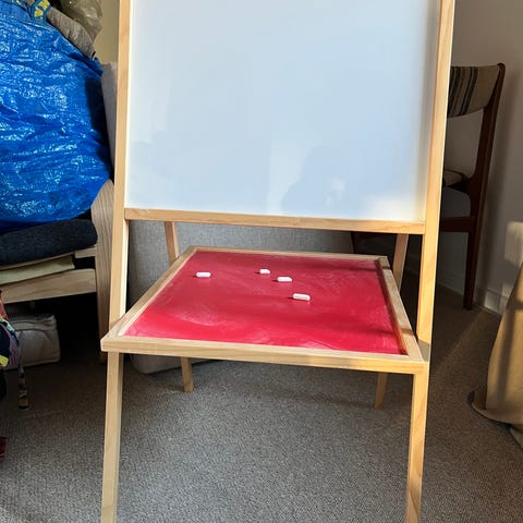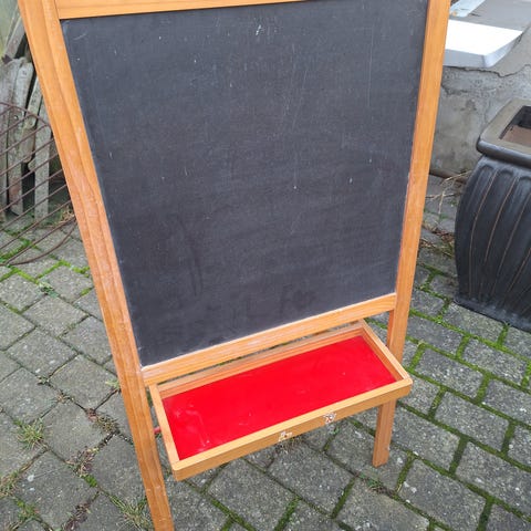 Kridttavle og whiteboard. 117 cm høj, 62 cm bred. Whiteboardet har en streg på tværs og lidt brugsspor.
