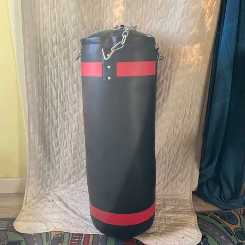 Boksetræneren monteres på en væg og optager minimal plads, når den ikke er i brug.