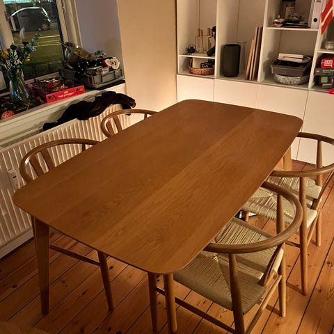 Perfekt som spisebord til både hverdag og gæster – passer godt ind i de fleste hjem.