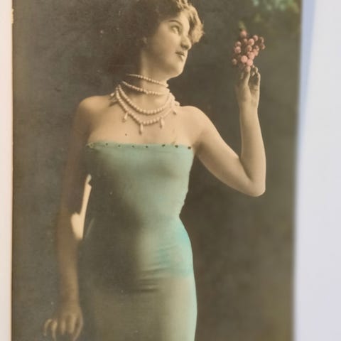 Postkortet med Clara Butt har en lille skade ved det ene øjenbryn, men er derudover rimeligt velholdt.