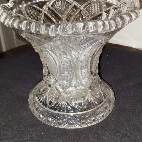 Krystal lågkrukke med mønster og facetteret låg. Kan anvendes til opbevaring af små genstande eller som dekorativt element.
