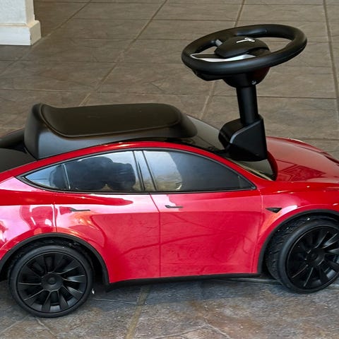 Tesla gåbil fra Radio Flyer, små ridser men god kvalitet & stand, meget sjov bil.