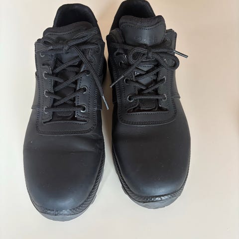 str. 39. Overdel i Sort Læder, Stødabsorberende PU Mellemsål, PU (polyurethan) er lettere og mere fleksibelt end gummi, hvilket gør skoen yderst komfortabel at gå i. Skrid hæmmende PU Ydersål, Vægt 360g (Str. 42). Sender gerne på købers regning. Pris på nettet 916,- kr. sælges for