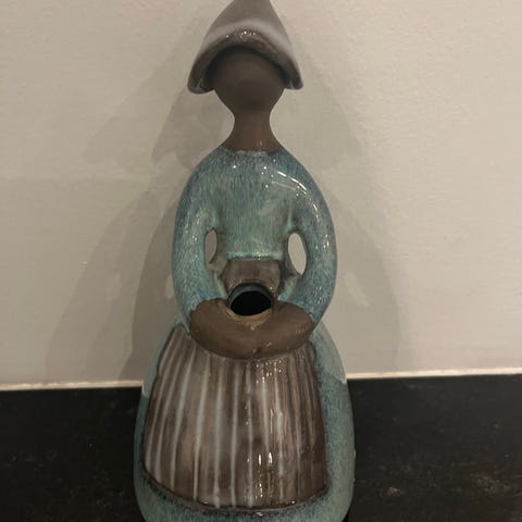 Ulla Skogh - pigefigur / keramikkvinde, Virkelig fin gammel blomsterpigevase af svenske Ulla Skogh. Flot stand! Fantastiske farver! H: 19 cm Ø: 12 cm (forneden). Kr 350,-