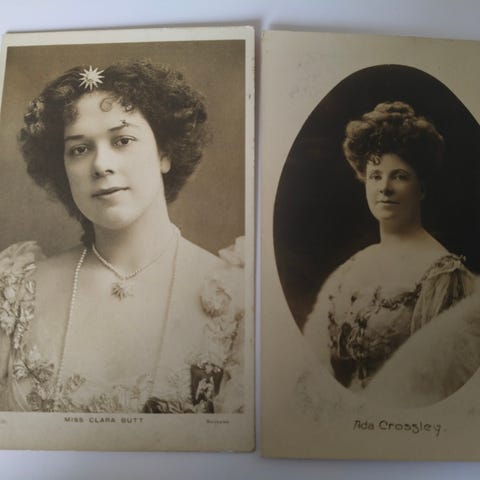 Fine postkort med billeder af den daværende kendte sanger, danser og skuespiller, Violet Emily Wegner. Hun levede fra 1887 til 1960 og blev født i London. I 1924 giftede hun sig med prins Peter Petrovich-Njegosh fra Montenegro og blev således prinsesse Ljubica af Montenegro.