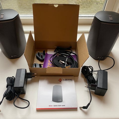 Leveres KOMPLET med ALT udstyr som strømstik, minijack stick, bluetoothadapter, ethernet kabler samt ophæng til højttalerne, som også ses på billederne.