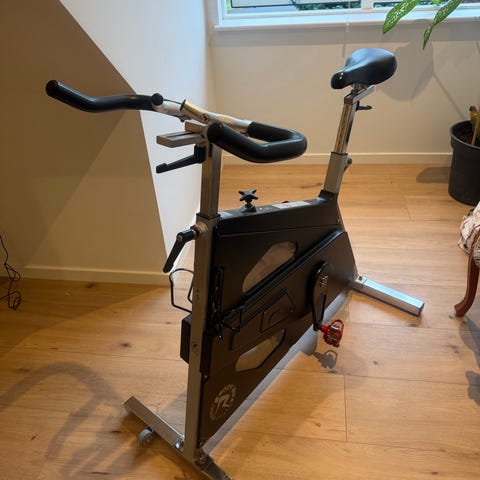 Body Bike Indoor Cycle med sort sæde og stel. Designet til indendørs træning med pedal og sadel tilpasset brugeren.